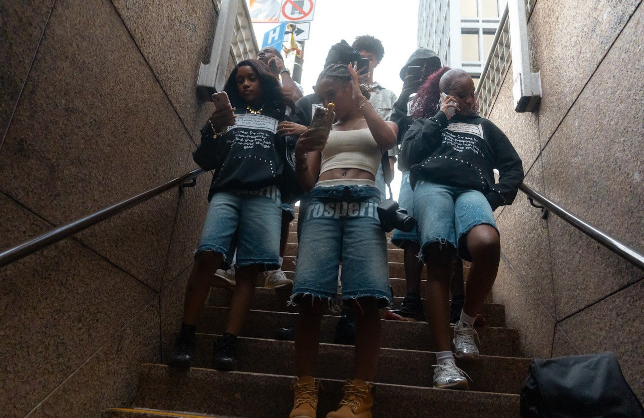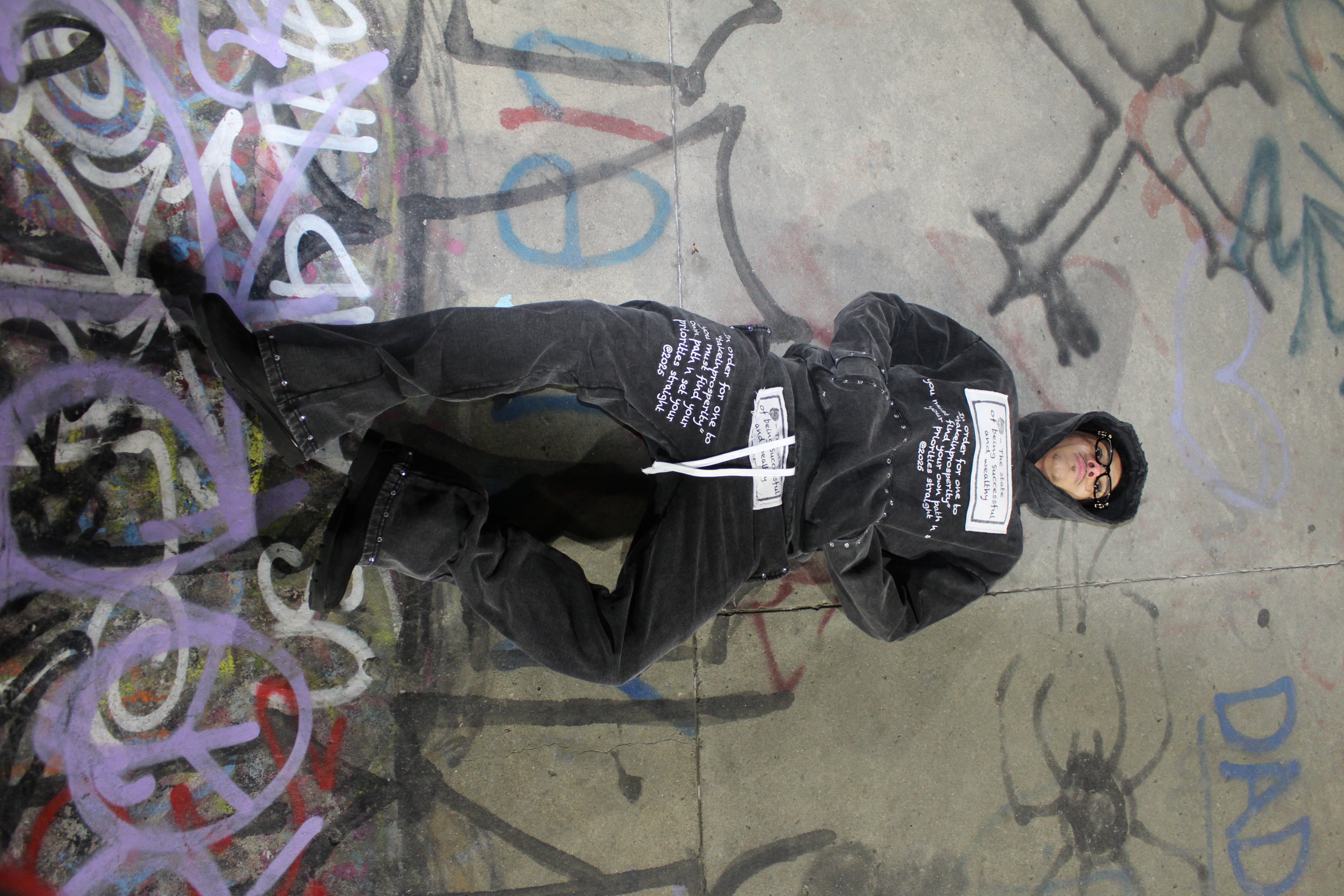 ''takeinprosperity'' BLACK ACID WASH, RHINESTONE HOODIE
